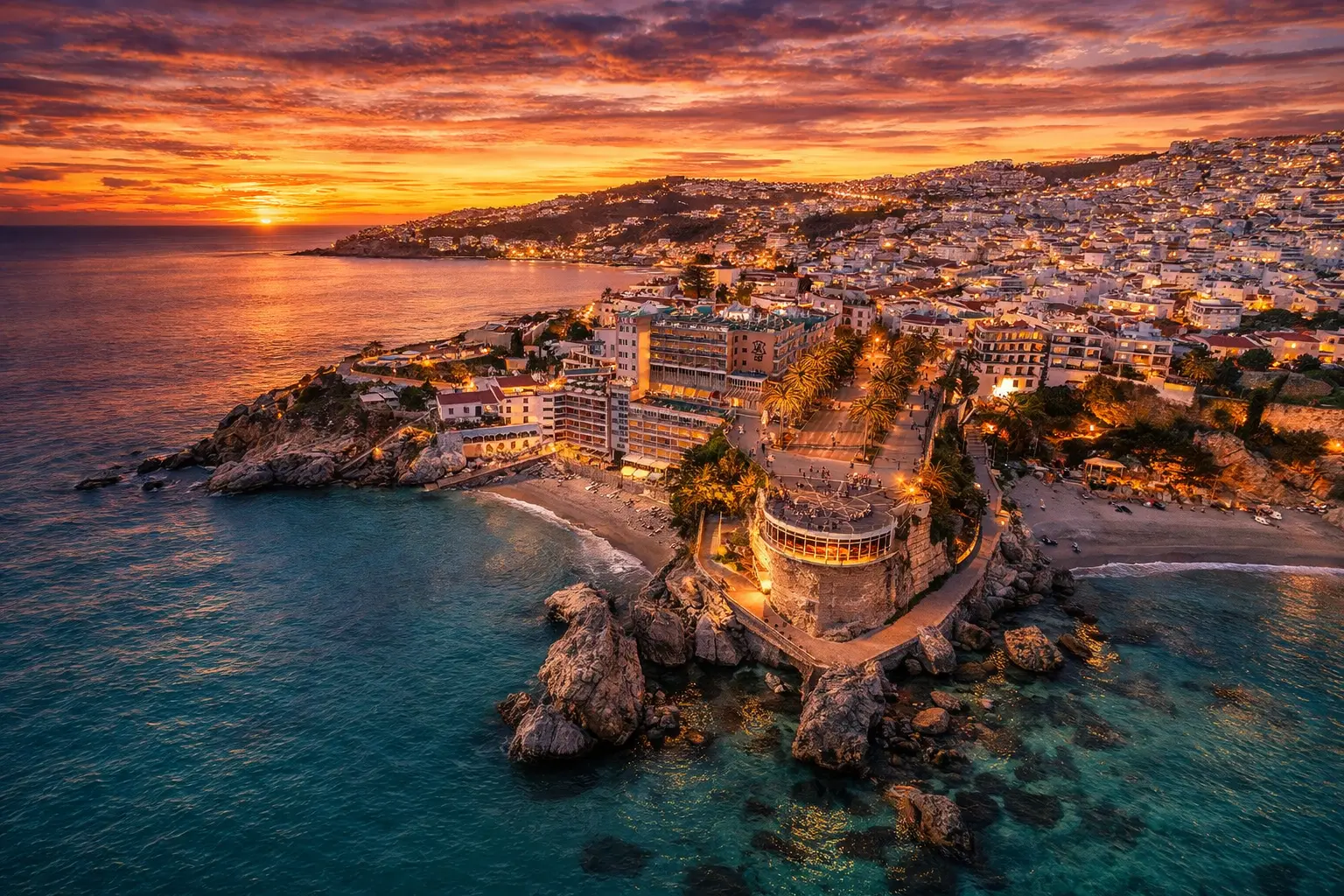 Playas cristalinas, casco antiguo blanco y el famoso Balcón de Europa.