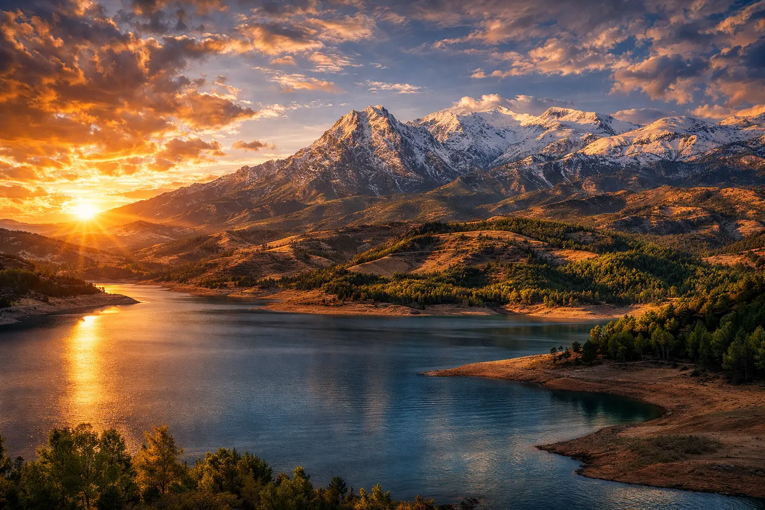 Uno de los paisajes más impresionantes del interior costero: agua azul rodeada de montañas y miradores naturales.