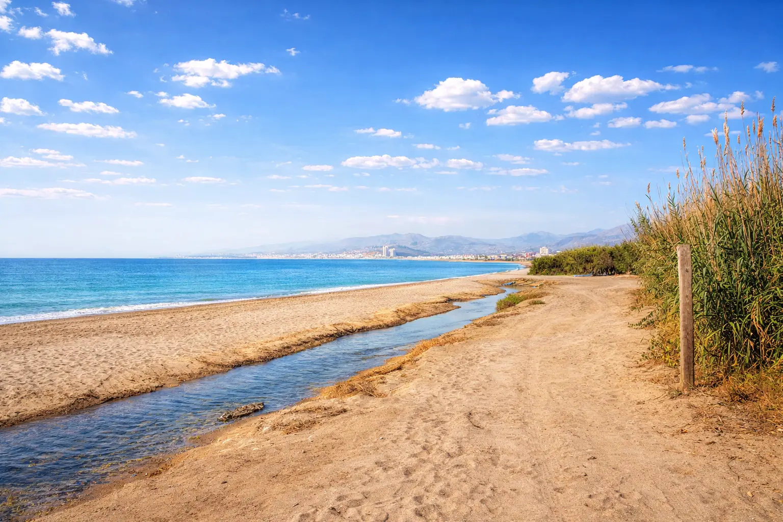 Una playa amplia y tranquila, perfecta para pasear, bañarse y disfrutar del mar.